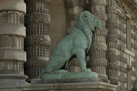 - Commandé par le roi Louis-Philippe, en 1847, pour faire pendant au Lion au serpent (LP 1184) et être placé dans le jardin des Tuileries. (Le 23 décembre 1846, Barye réclame 4 000 francs sur les 10 000 francs alloués pour activer l'achèvement du groupe ; En août et septembre 1847, il demande 2 000 francs pour remplir les engagements qu'il a pris avec le fondeur Lebeau, le moulage au sable étant sur le point d'être terminé ; 2 000 francs lui sont versés après la fonte et 2 000 francs à la livraison, le 19 février 1848). En novembre 1848, le Louvre prend des mesures pour transporter le bronze depuis l'hôtel d'Angivilliers, dans la cour duquel il a été placé provisoirement, jusqu'à son piédestal dans le jardin des Tuileries, à la terrasse au bord de l'eau ; déplacé à la porte des Lions, porte extérieure du musée du Louvre située sur le quai dit alors "des Tuileries", en 1867, où on lui adjoint un pendant (TU 19 B).