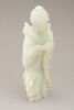 - Le personnage a les mains jointes et il est drapé dans une robe très plissée laissant dépasser le bout de ses pieds nus. Forme aplatie.