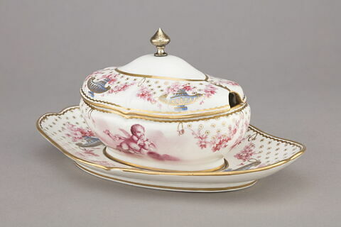 - Titre : Sucrier ovale fixé sur plateau, avec couvercle, d'une paire (R 496)