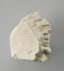 Précision sur l'objet : Fragment de stèle. Décor : extrémité d'un signe de Tanit à double trait, d'où part une tige - Dimensions