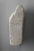 Précision sur l'objet : Fragment de stèle dédicacée. Décor : signe de Tanit sur autel à pieds recourbés, au fronton - Inscriptions