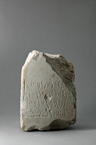 Technique : sculpté (Gravée sur la face. Traces de pic sur les tranches latérales) - Date de création / fabrication