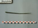 Précision sur l'objet : épingle sans tête, à tige élargie, à décor géométrique: chevrons gravés à la partie supérieure. Sommet endommagé, peut-être initialement en forme de calotte aplatie. Type A 1 a - Dimensions