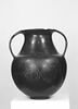 Technique : bucchero (bucchero noir brillant), gravé = gravure (gravé (panse, anse) . pointillé au peigne (panse)), estampé en creux (estampage = estampé) - Date de création / fabrication