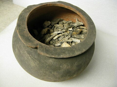 Typologie : Couvercle associé au chaudron - urne funéraire qui est dans la même caisse - Description / Décor