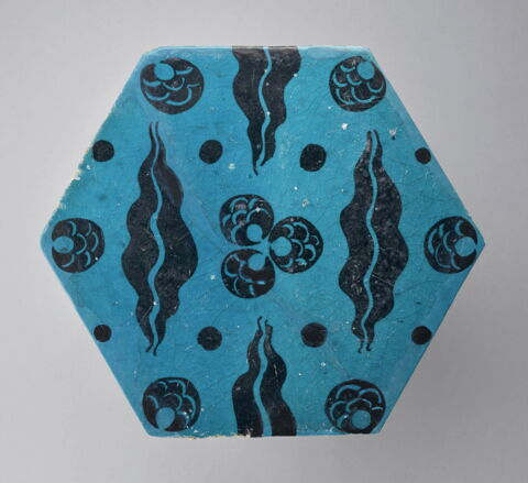 Matériau/Technique : Céramique (pâte siliceuse), décor peint sous glaçure transparente colorée - Date de création / fabrication