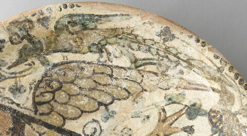 Matériau/Technique : Céramique (pâte argileuse), décor peint sur engobe sous glaçure transparente - Date de création / fabrication