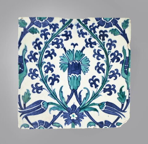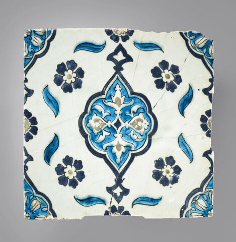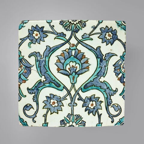 Matériau/Technique : Céramique (pâte siliceuse), décor peint sur engobe sous glaçure transparente - Date de création / fabrication