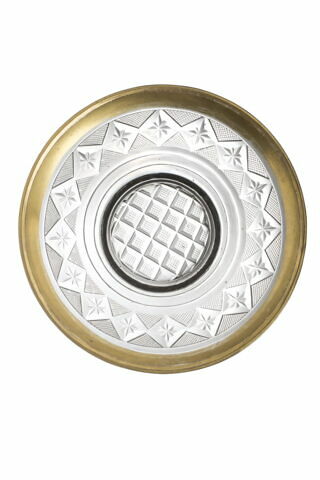 Décor : losanges ornés de rosaces taillées alternant avec des triangles quadrillés. Bord et anse dorés. - Dimensions