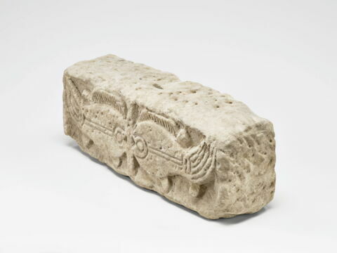 Technique : sculpture, enduit (quelques restes d'enduit de préparation en surface) - Date