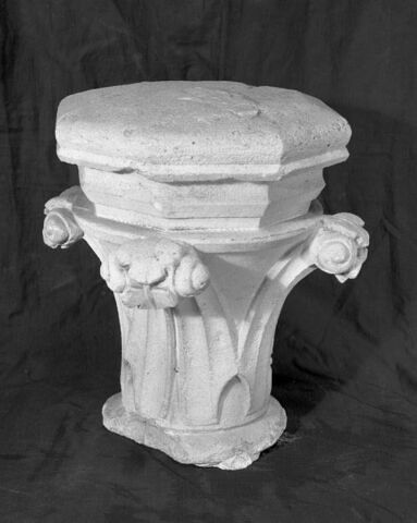 - Pourrait avoir appartenu au décor de l'abbaye bénédictine de Saint-Denis. Selon une hypothèse de Damien Berné en janvier 2026, il proviendrait plus précisément de l'arcature basse devant les murs gouttereaux à l'intérieur de la basilique. Magasins de Saint-Denis au XIXe siècle. Versement des Chantiers de Saint-Denis, 1898-1899.