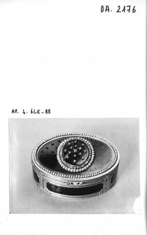 Grandjean, Serge, Catalogue des tabatières boites et étuis des XVIIIe et XIXe siècles du musée du Louvre, [Collections du Musée du Louvre], Paris, RMN, 1981, n° 563