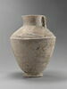 Précision sur l'objet : Jarre carénée, à anse plate décorée d'un personnage. La partie supérieure du carénage est ornée de triangles et de chevrons. Fond plat, pied tourné - Dimensions