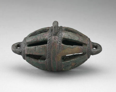 Précision sur l'objet : Grelot de harnachement ovoïde et ajouré enfermant des billes - Dimensions