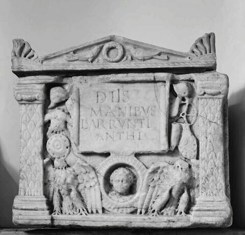 Désignation : Couvercle de l’urne cinéraire de L. Arruntius Anthus.