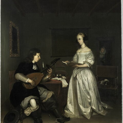 Le Duo: chanteuse et joueur de luth théorbé Date de création/fabrication : 2e quart du XVIIe siècle (vers 1669 - 1670) Borch, Gerard ter