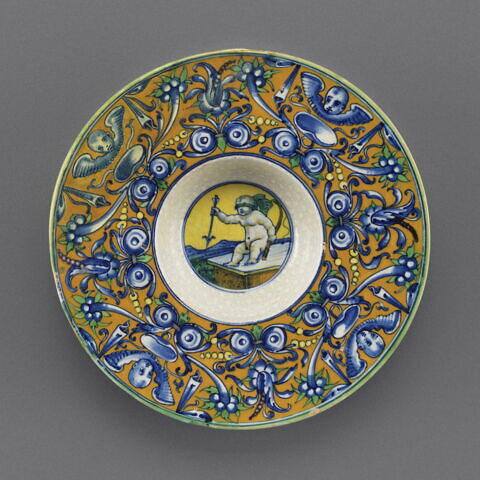 Tondino : Amour, les yeux bandés, brandissant une flèche Epoque / période : Renaissance (Occident) Date de création/fabrication : vers 1500 - 1510 Anonyme