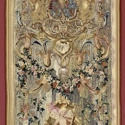 Entre-fenêtre représentant l'Amour sur un trône orné de dauphins, de la Tenture des Attributs de la Marine Epoque / période : Louis XIV (1643-1715) (Occident->époque moderne = Ancien Régime->dynastie des Bourbons) Date de création/fabrication : 1689 - 1692 Hinart, Jean-Baptiste